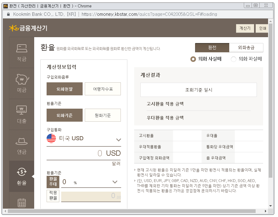 이라이프 로그 국민은행 환율조회 및 국민은행 환율 계산기