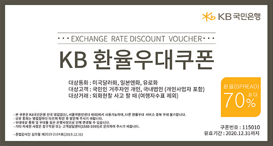 Kb국민은행 환율우대쿠폰 70 2020년 12월 31일까지